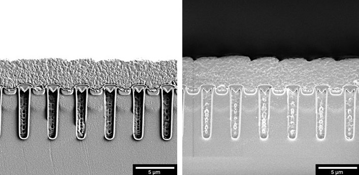 FIB-SEM 雙束電鏡系統(tǒng)的配置使得電子束和離子束的聚焦點重合,這在很多應用中可以獲得最優(yōu)化的結(jié)果。這一特點也使得儀器在完成 FIB 銑削任務的同時,可以進行 SEM 實時成像----這對于精度要求極高的 FIB 操作有很大幫助,使得操作性能和工作效率實現(xiàn)重大飛躍。 TESCAN 提供兩種不同的 FIB 離子源:鎵離子和氙等離子體。Ga 離子源 FIB 適用于所有在制造和納米加工中需要極高精度的應用。另一方面,Xe 等離子體 FIB 具有超高離子束流,能夠以高于 Ga-FIB 50倍的效率去除大量材料。在精度方面,我們的高分辨率 Xe 等離子 FIB 可以實現(xiàn)< 15 nm的分辨率,適用于同時要求高效率和高精度的精細加工任務。 產(chǎn)品型號(點擊型號鏈接可查看詳細介紹): TESCAN AMBER 適用領(lǐng)域 半導體和微電子:球柵陣列、硅通孔、引線焊接、微機電系統(tǒng) 我們提供多種配置的 FIB-SEM 系統(tǒng),能夠滿足從常規(guī)工業(yè)應用到先進和具有挑戰(zhàn)性的工藝應用,這些應用要求在成像和微/納米機械的復雜工作流程方面達到很高的標準。 |
