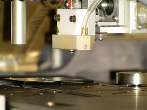在6500粘片機(jī)上的晶圓級(jí)別封裝(WSP)的共晶粘片給客戶提供了一個(gè)良好的微電子技術(shù)的解決方案,用于P-side向下的激光二極管粘貼(die-to-wafer)。脈沖加熱吸頭用于80/20 Au/Sn脈沖回流粘貼,晶圓平臺(tái)有穩(wěn)態(tài)加熱,配備用于二極管應(yīng)用的華夫或凝膠盤(pán)。